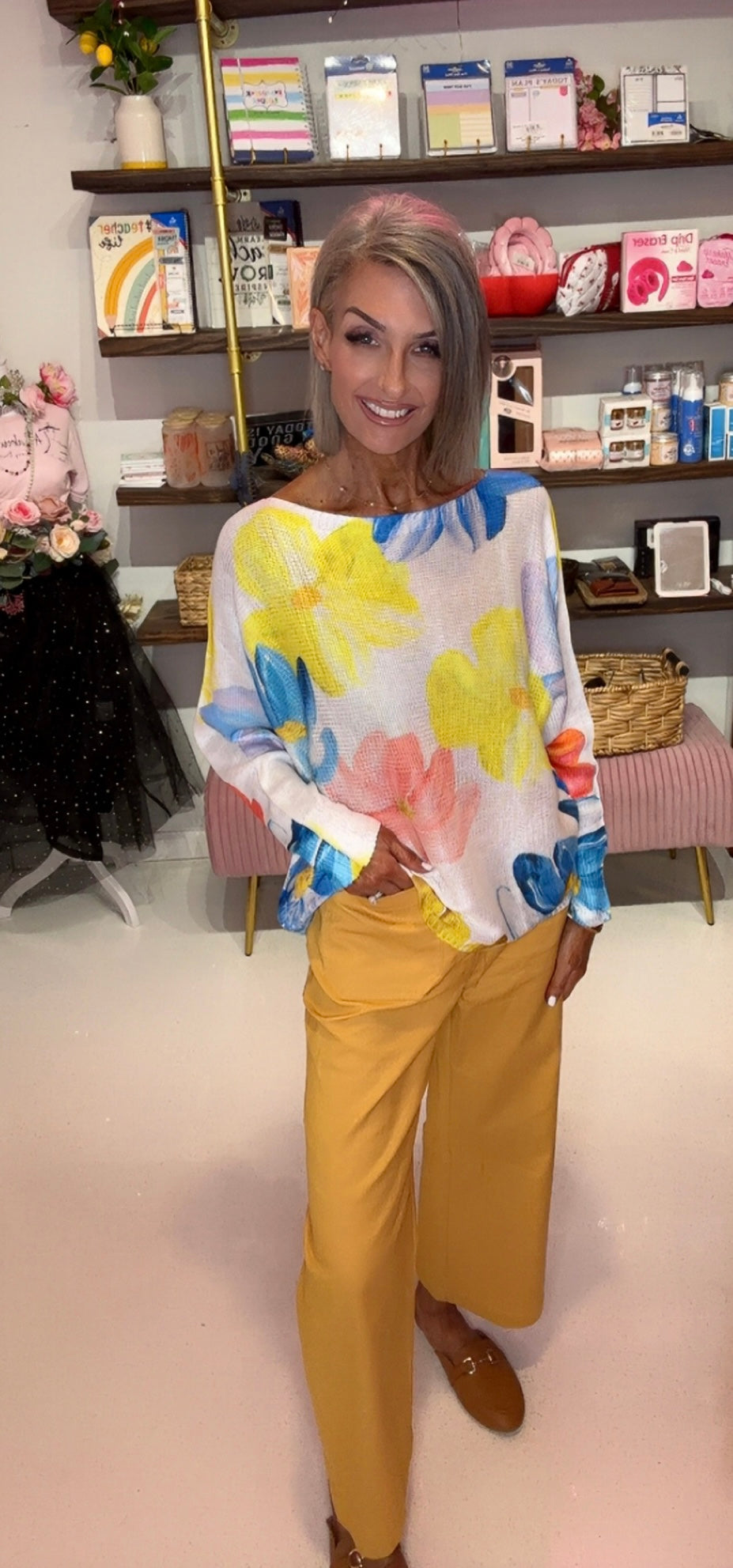 Ankle Cropped Summer Pants In A Stretchy Denim-like Fabric With Pockets
