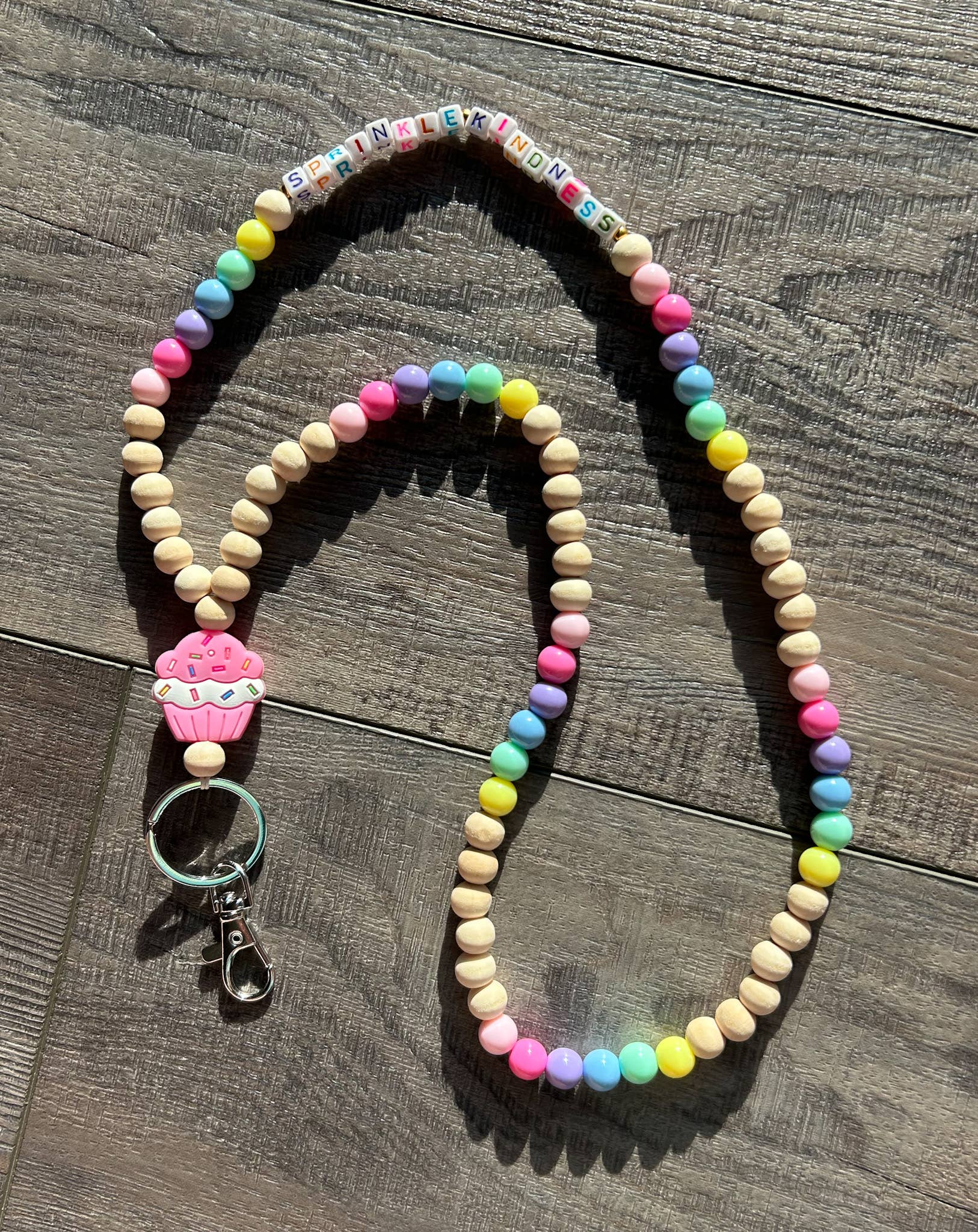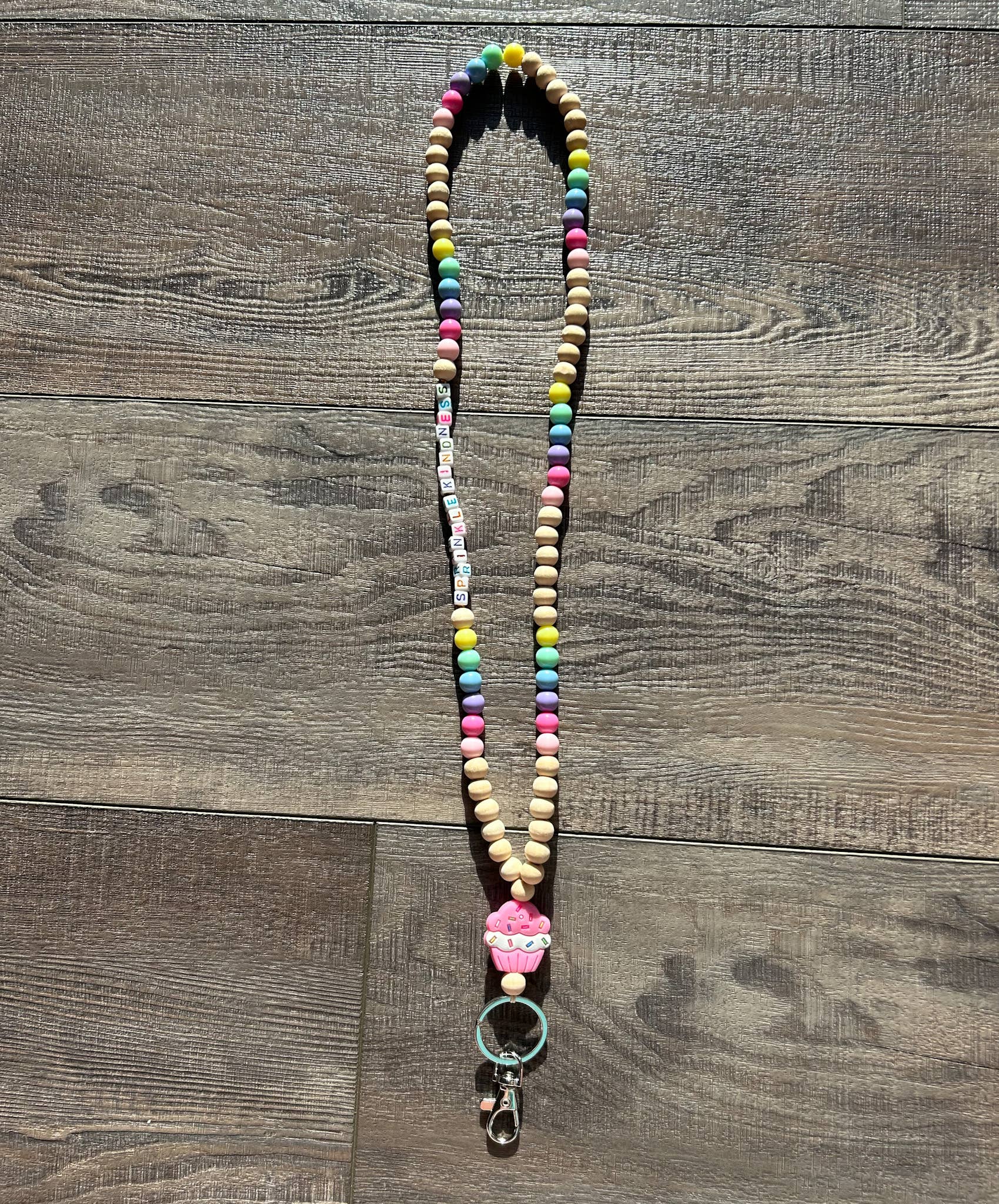 Brighten up your teaching essentials with our Colorful Beaded Teacher Lanyard with Cupcake Charm! This delightful accessory is perfect for educators who want to add a touch of fun and personality to their daily routine. The lanyard features a vibrant array of high-quality, hand-selected beads in a rainbow of colors, ensuring you stand out with style and flair. Sprinkle Kindness beads.