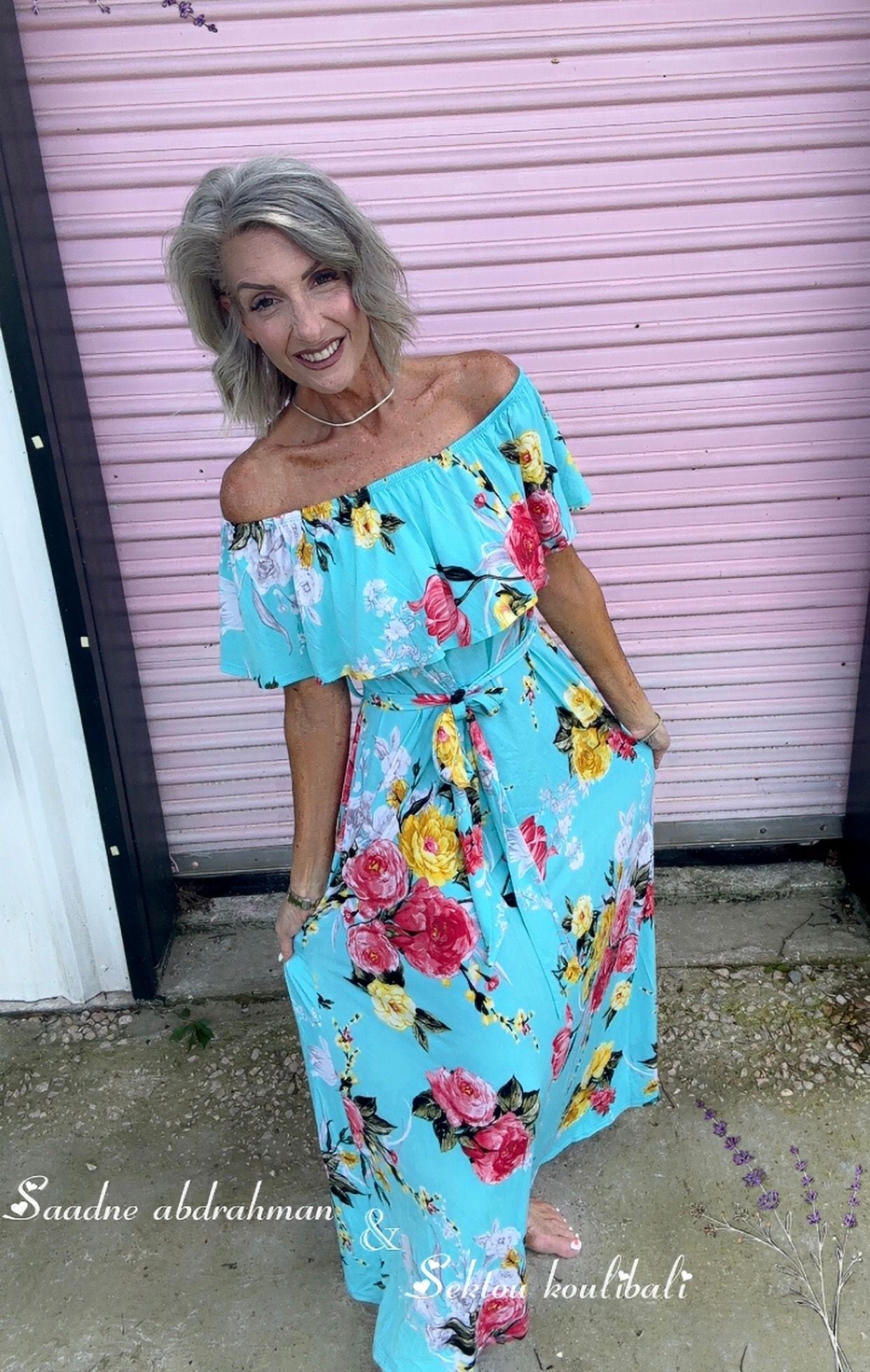 Floral Off Shoulder Ruffle Hem Maxi Dress with Sash Belt