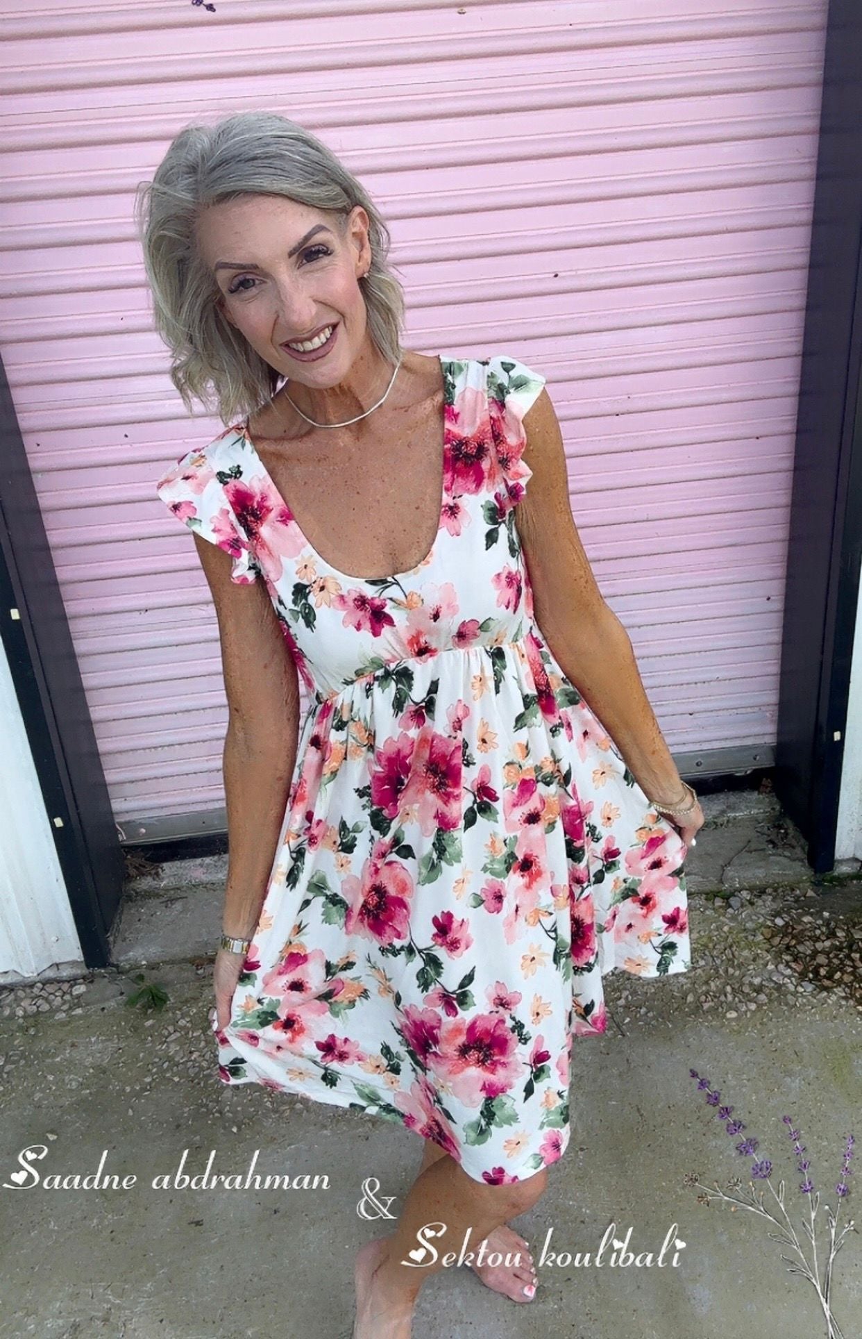 Floral Printed Scoop-neck Swing Dress with Flutter Sleeves