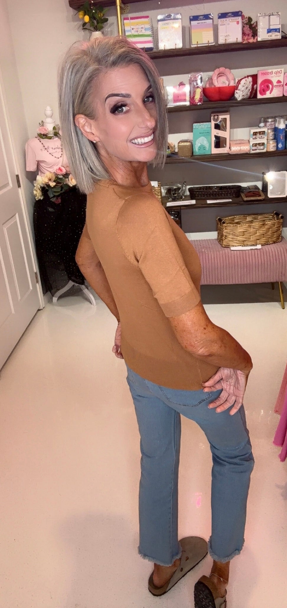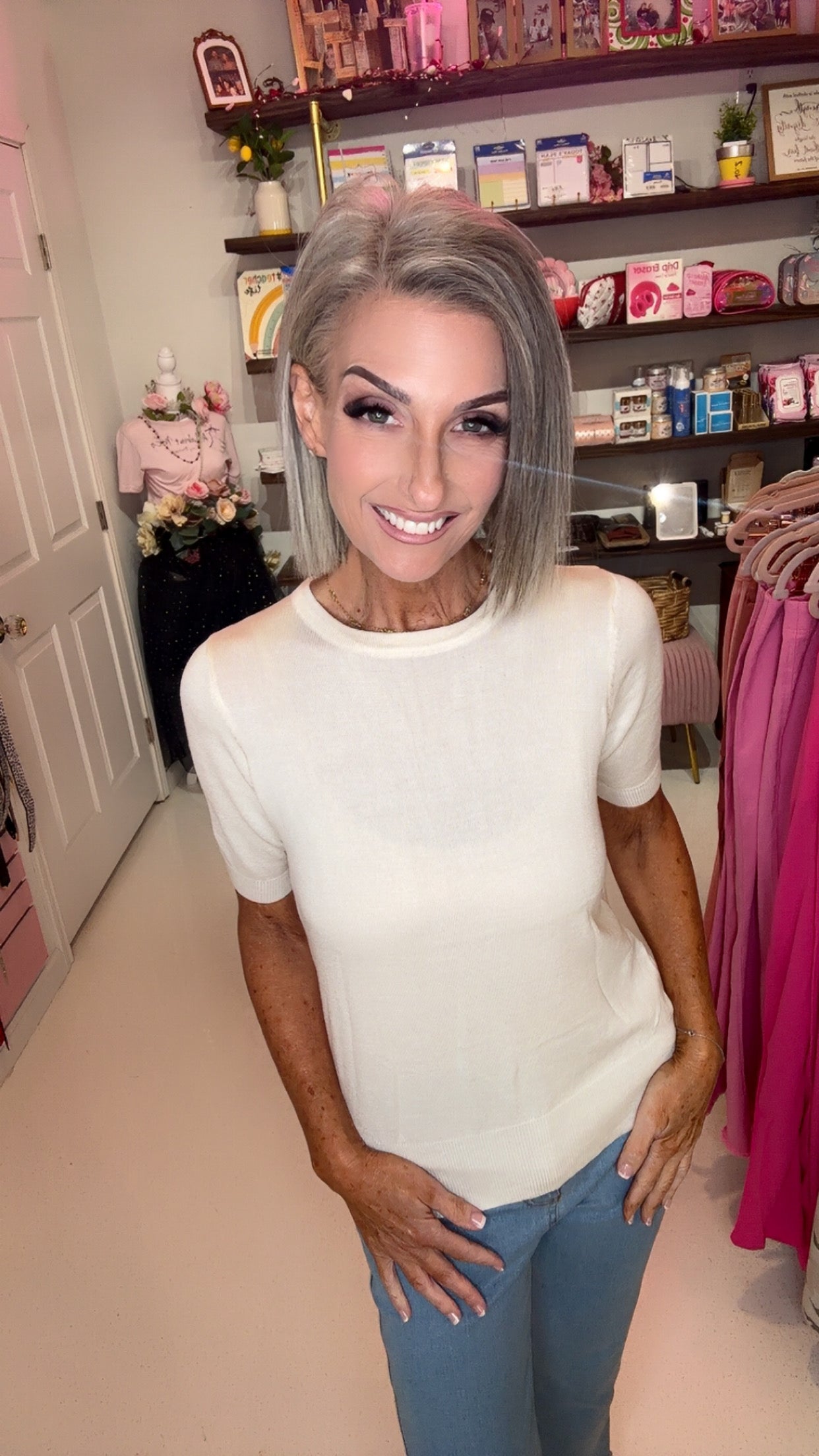21.25"-22.75" Length, 1/2 Short Sleeves, Colorful, Basic, Casual, Simple, Knit Pullover Sweater for Women. Various Vivid Color Choices with Sizes: Small, Medium, Large, and X-Large. High Quality Soft Viscose Pullover Fits Well For Any Occasion. Matches Well with Swing Skirts, Vintage Style Skirts, Dresses, and Pants. Retro Pullover Sweater for Vintage Inspired Fashion Lovers! YEMAK's Feminine Charm Slim-Fit Pullover Sweatshirt Top is Perfect For Women