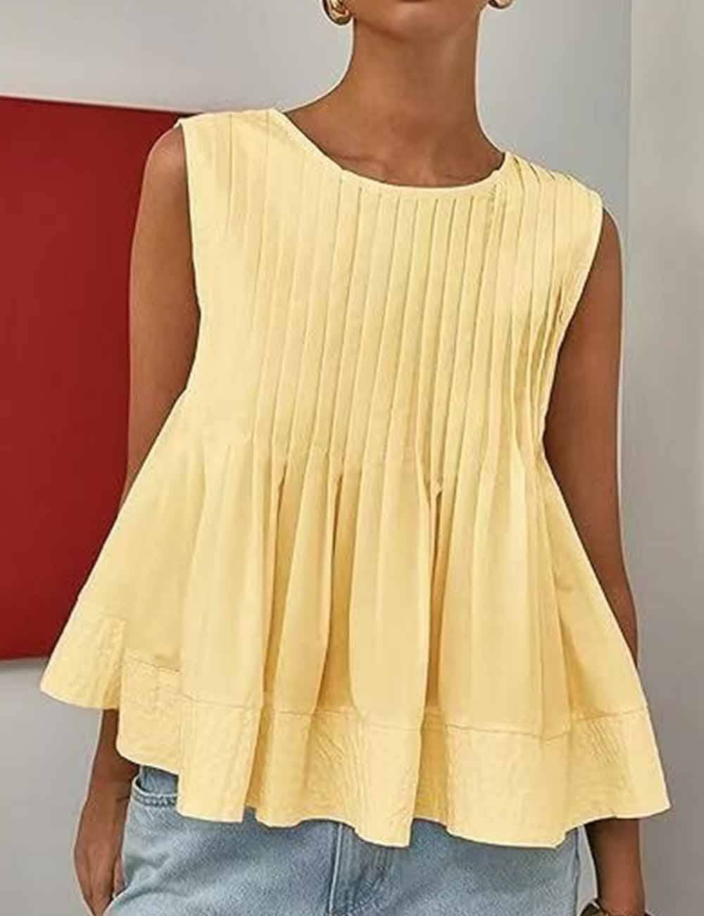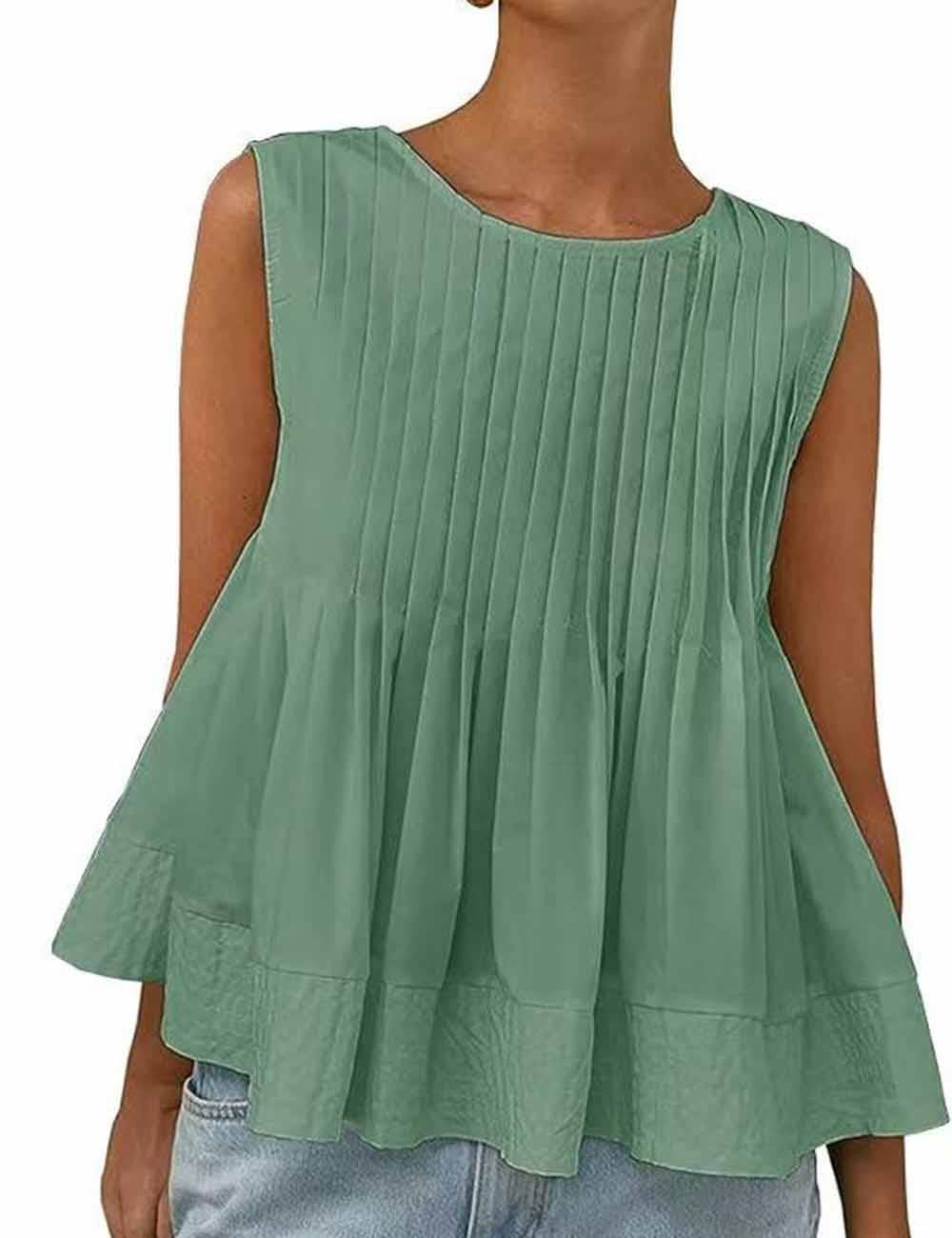 Ladies Solid Color Pleated Sleeveless Tank Top
