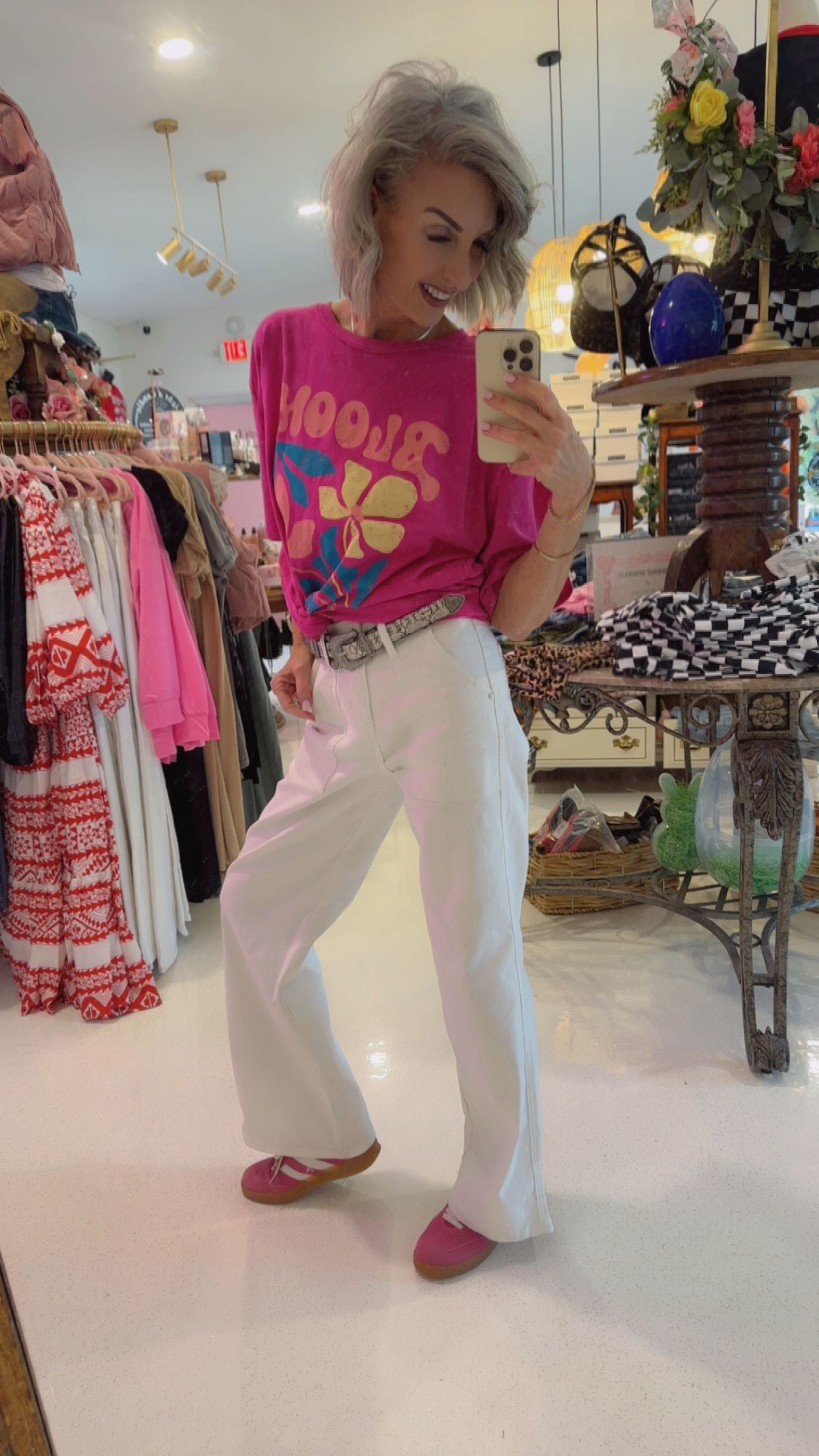 MC5177HW - WHITE - WIDE LEG DENIM PANTS WITH SIDE SPLITS