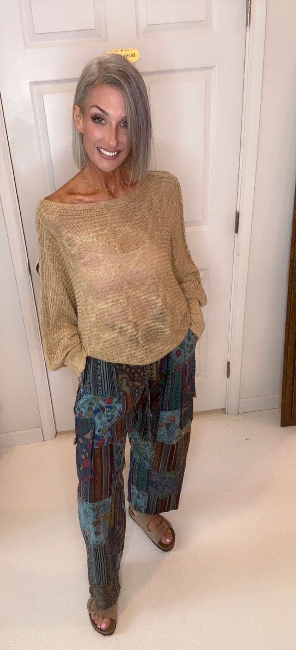 Experience the comfort and unique style of Kathmandu Imports' Mushroom patchwork pants. These retro/vintage-inspired pants, made from 100% cotton, feature a playful mushroom patchwork design and convenient pockets. Ideal for holiday outings or cozy fall/winter days at home, these pants offer a junior fit for added comfort. To maintain their vibrant pattern, simply machine wash as needed.