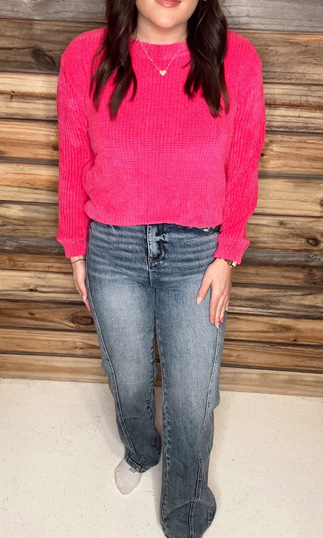 HIGH RISE STRETCH RELAXED STRAIGHT JEANS w/ SEAM DETAIL
