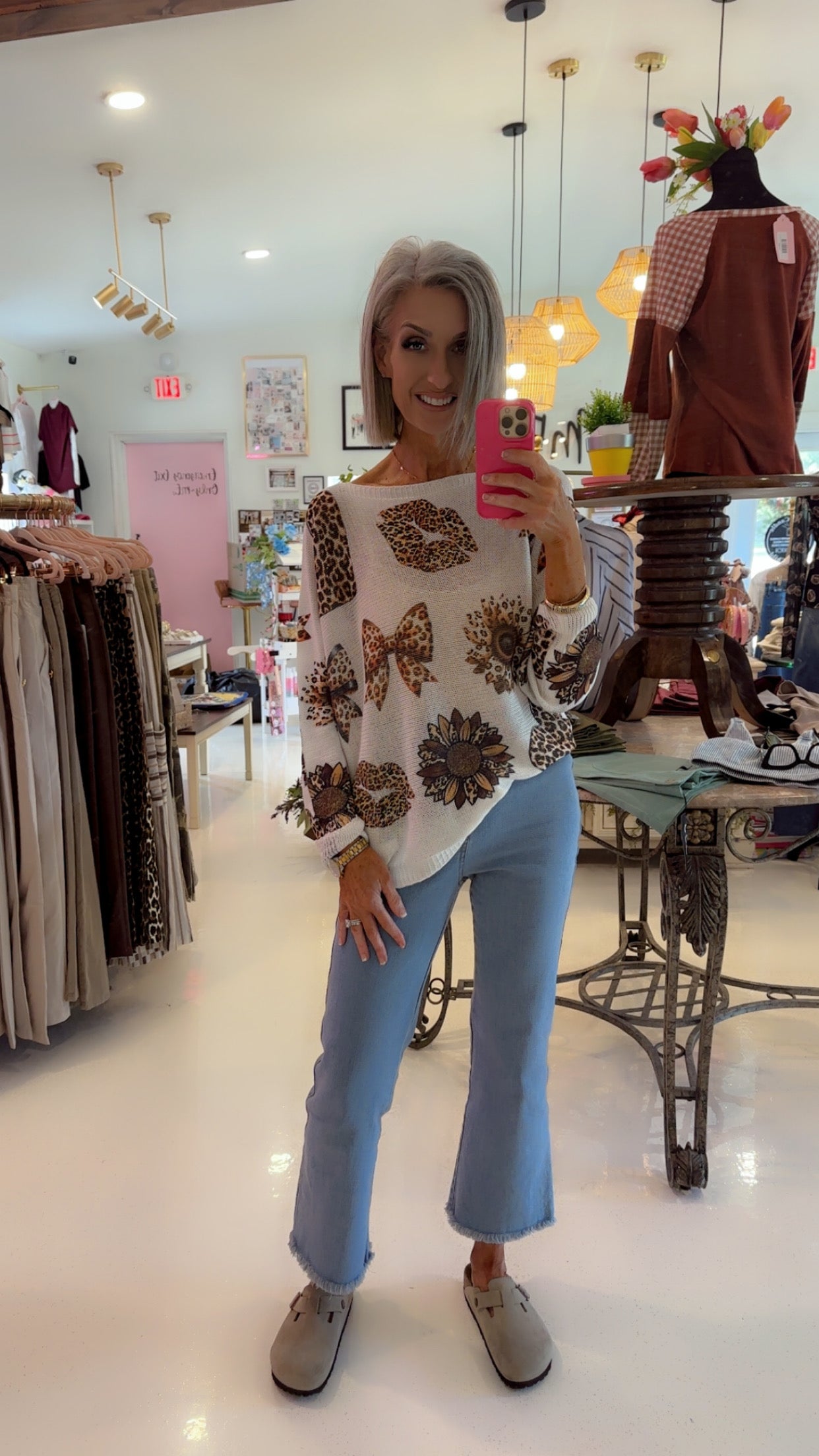 POAN White Animal Round Knit Printed Sweater LOOWIE
