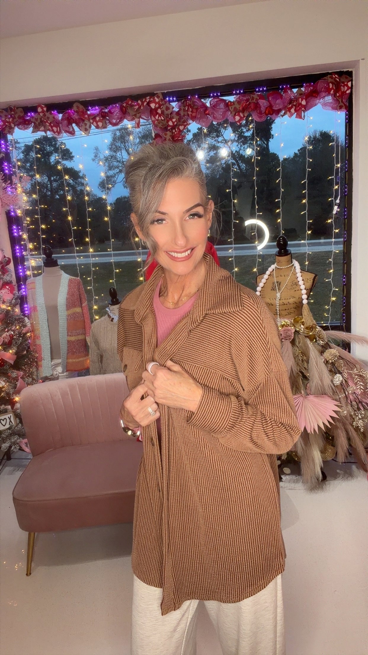 Rib Drop Shoulder Patch Pockets Button Down Shacket