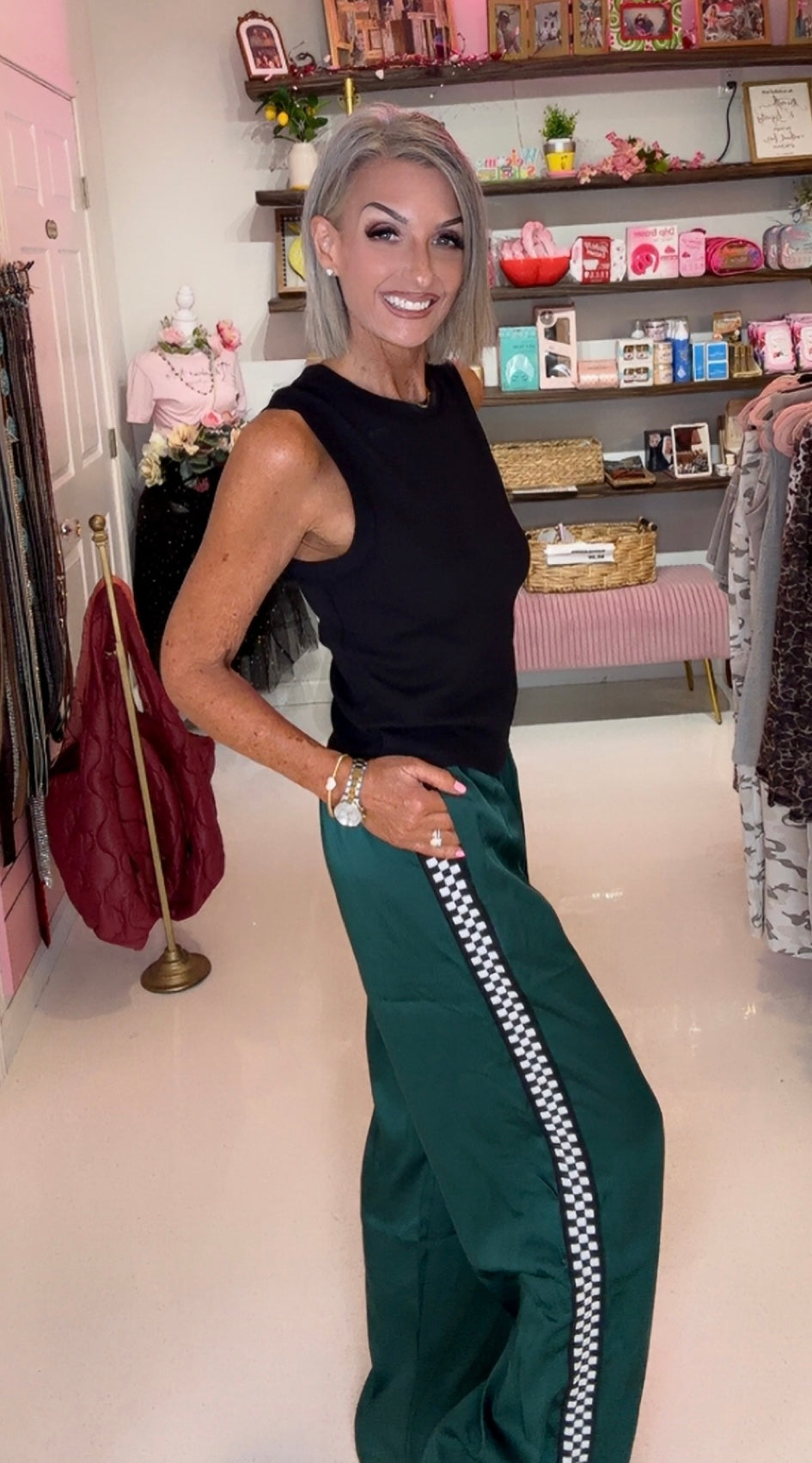 SOLID SATIN SWEATPANTS WITH SIDE CHECKERBOARD TAPE