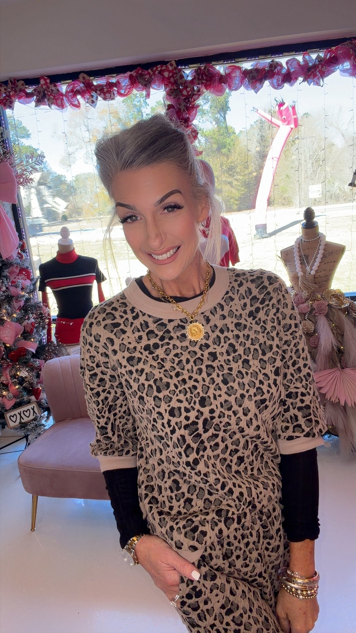 item LDC Spring 2026 Leopard Patchwork Long Sleeve Pullover Wide Leg Pant Set Material 85%Polyester+10%Cotton+5%Elastane Style Casual Pattern Leopard Occasion Daily Season S/S 👗 Chic two-piece set with matching top and pants. 🐆 Jacquard leopard print adds trendy texture. 👚 Ribbed crewneck pullover with puff sleeves. 👖 Wide-leg cropped pants with comfy waistband.