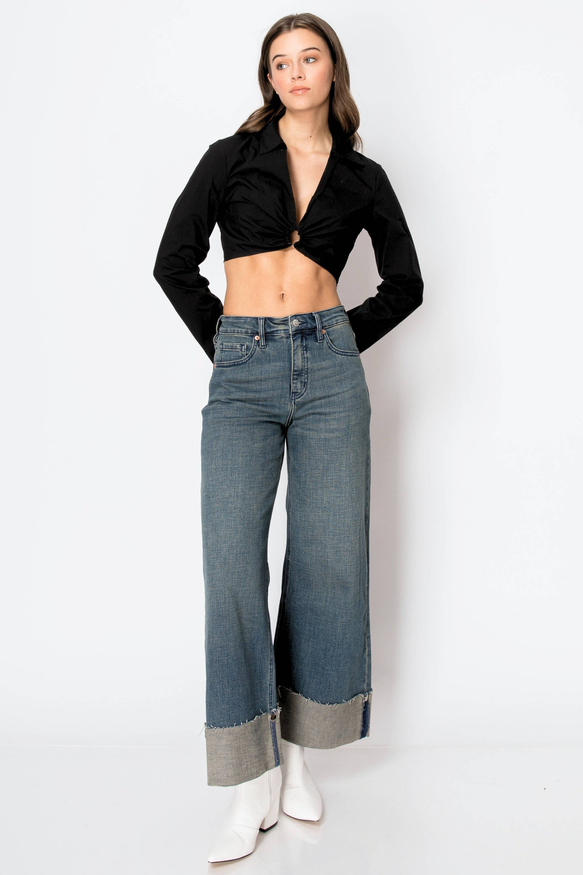 TUMMY CONTROL HIGH RISE CUFFED WIDE LEG JEANS