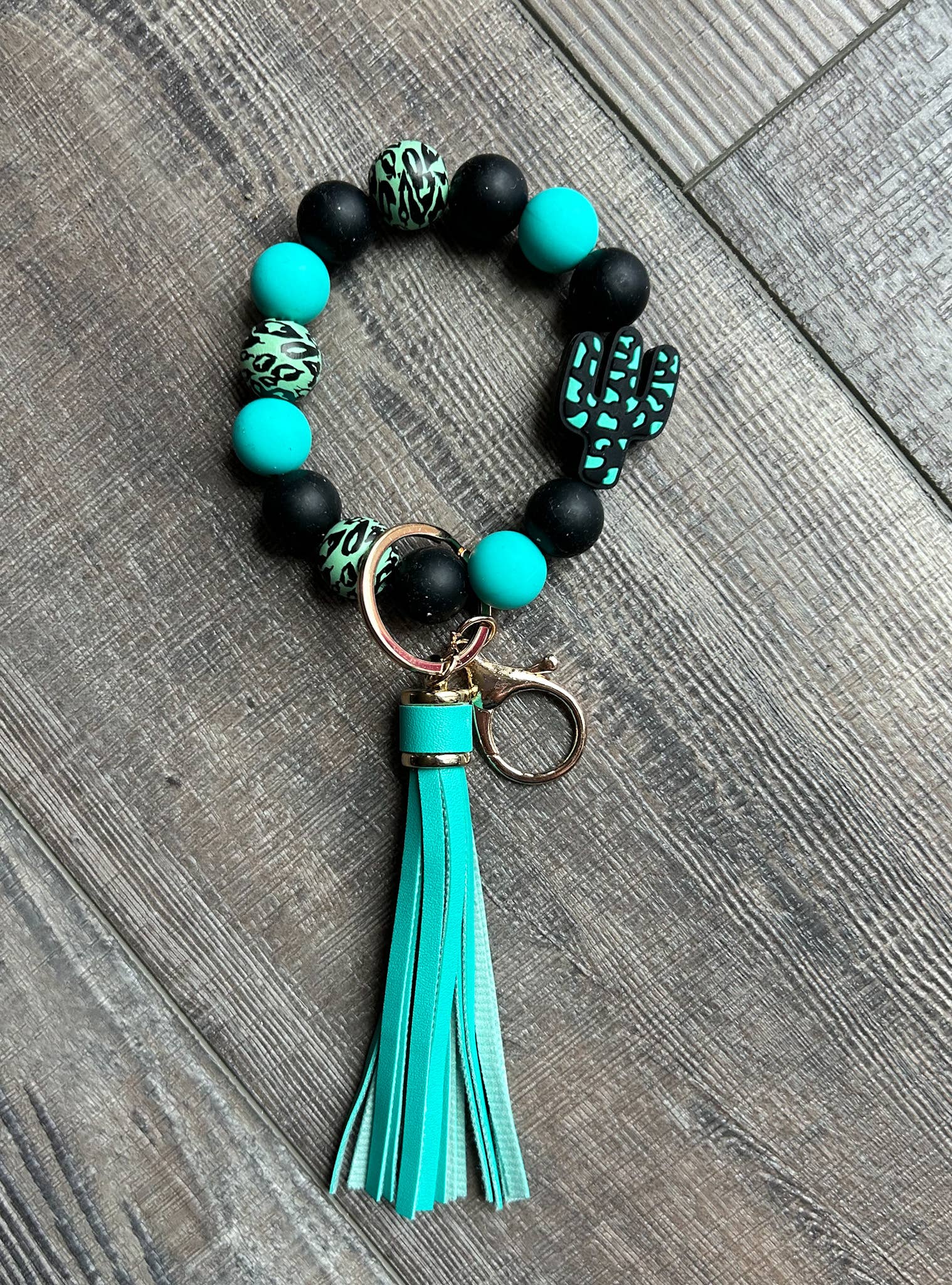 Western Cactus Wristlet Keychain with Tassel