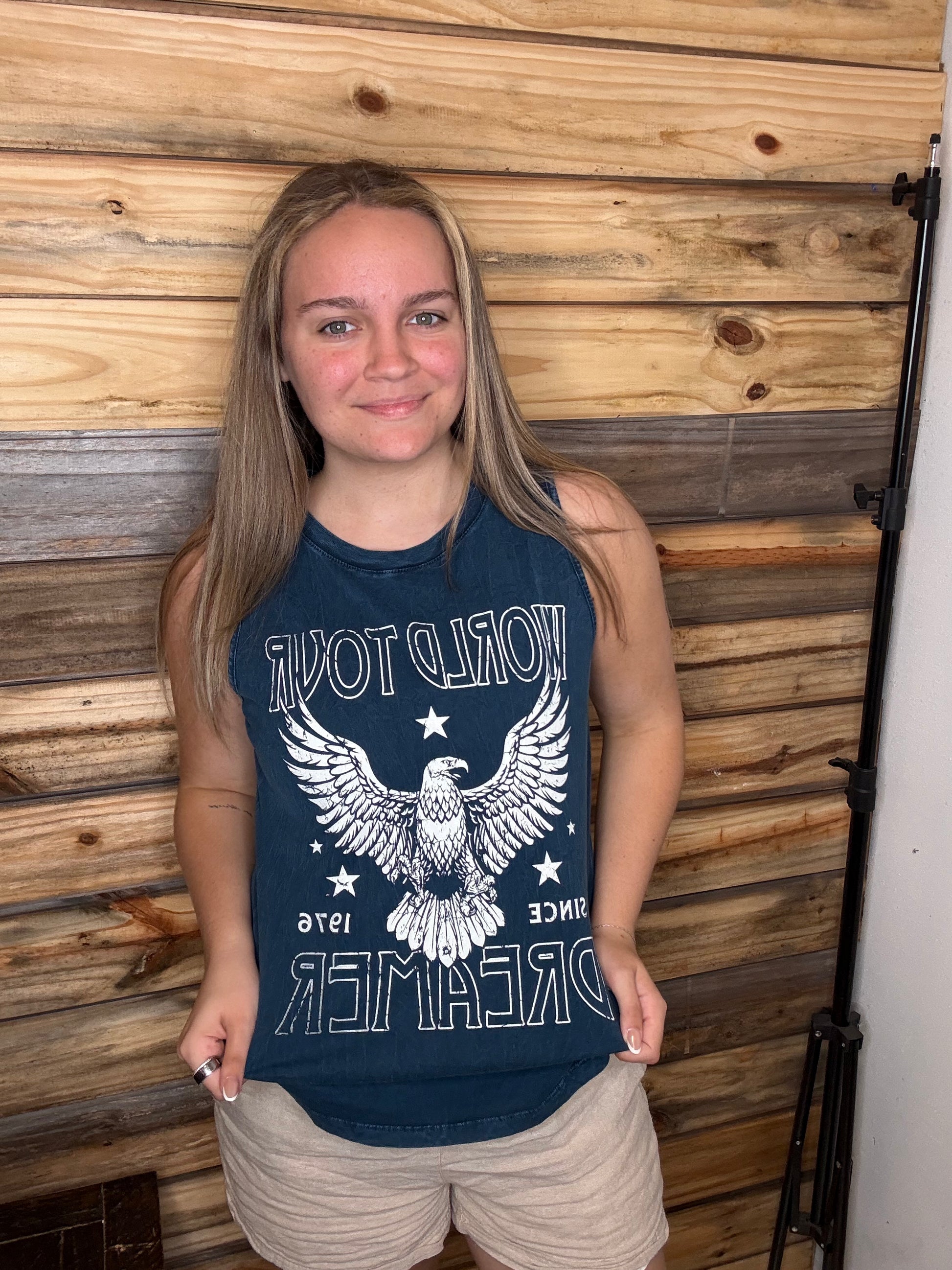 100% Cotton graphic tank top with an authentic vintage look and a softer feel that is only possible to achieve by using our special enzymes to dye and mineral wash processes